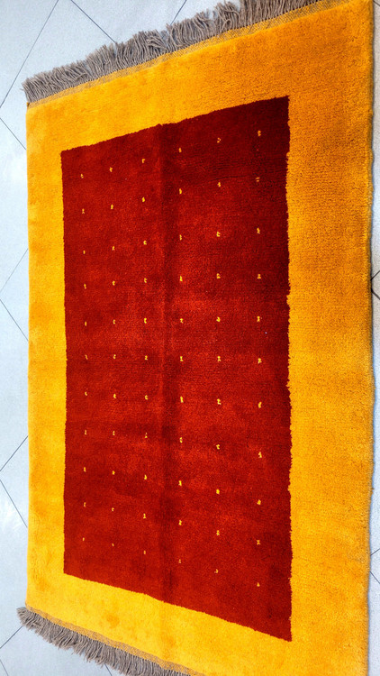 اگر به دنبال یک گبه تکبافت، جذاب و چشمنواز برای اتاق نشیمن، کنار تخت یا ورودی منزل هستید، این مدل از گبه شیراز میتواند بهترین گزینه باشد. رنگ مسی و زرد، حس گرما و انرژی را به فضا منتقل کرده و هماهنگی بالایی با مبلمان چوبی و سبک بوهو دارد.