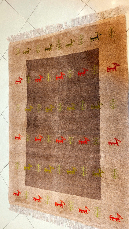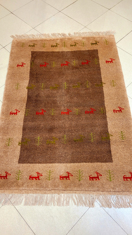این گبه ۱۰۰×۱۵۰ با پشم طبیعی بافته شده و مناسب اتاق نشیمن، راهرو، کنار تخت و دکورهای مینیمال است.