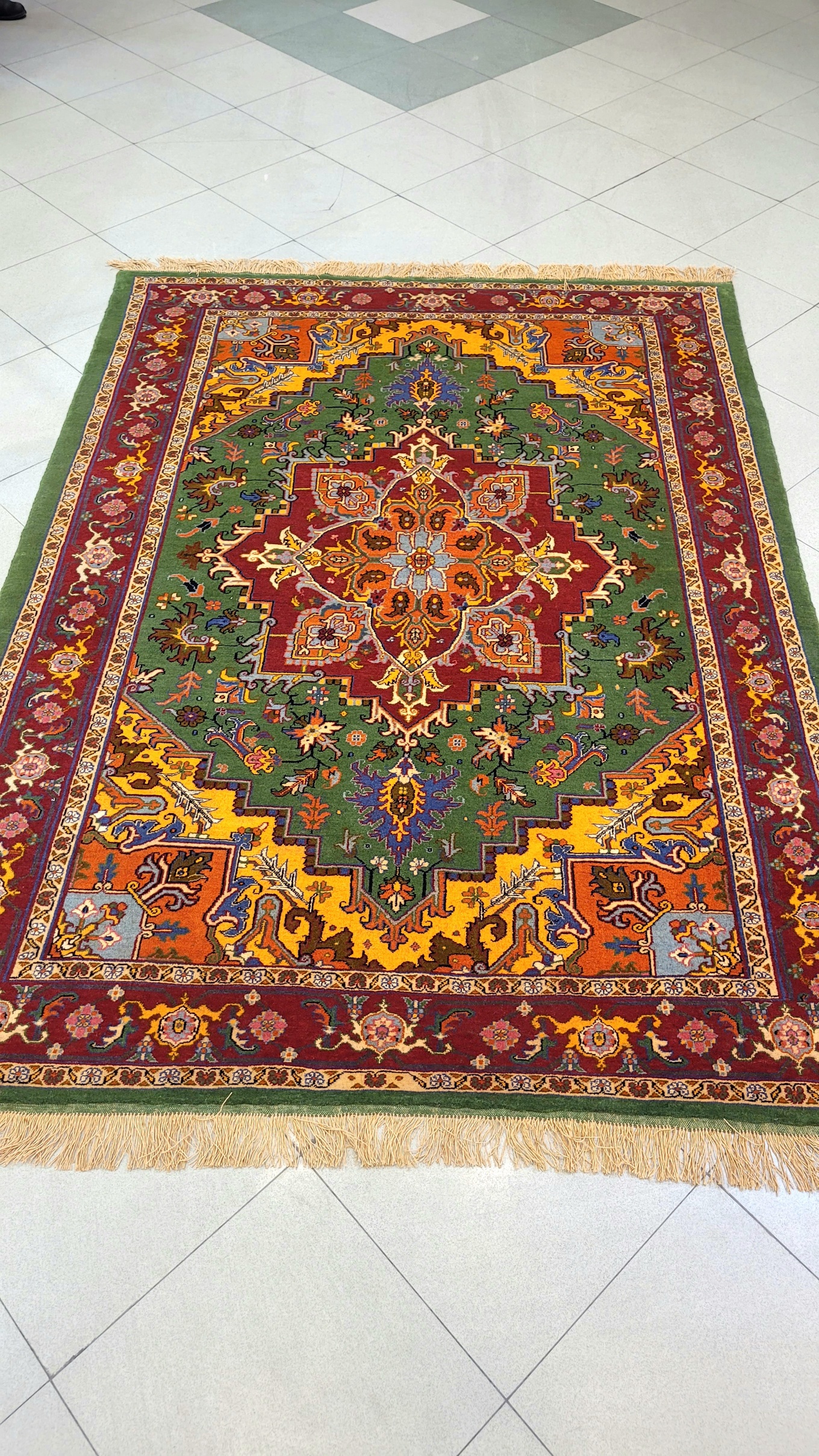 فرش دستباف هریس چله و گل ابریشم با ابعاد 160×230، یکی از زیباترین فرشهای سنتی ایرانی است که با بافت ظریف و استفاده از گل ابریشم، جلوهای لوکس و چشمنواز به فضای منزل میدهد. چله و گل ابریشم باعث دوام طولانی، پرزدهی کم و کیفیت بالای فرش شده است.