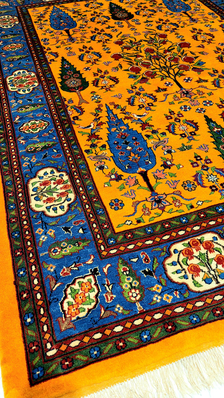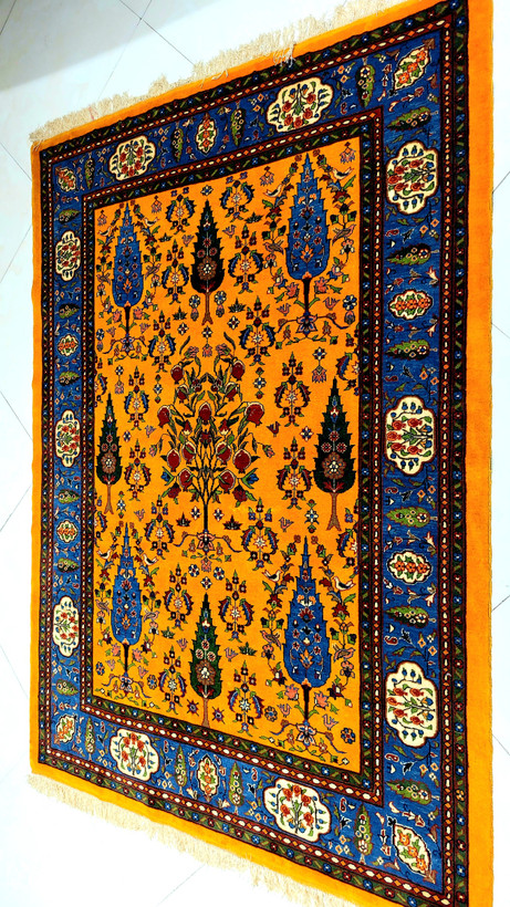 فرش دستبافت چله و گل ابریشم سرو انار140*200