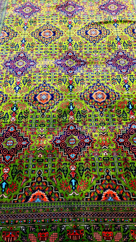 فرش دستبافت کرک مرینوس نقشه خامیاب در اندازه ۲۰۰×۳۰۰ یکی از اصیلترین و چشمنوازترین بافتههای ایرانی است که با رنگهای کاملاً گیاهی و هماهنگی کمنظیر میان طیفهای قرمز، سبز و ریشههای طبیعی جلوهای گرم، لوکس و ماندگار به دکور خانه میبخشد.