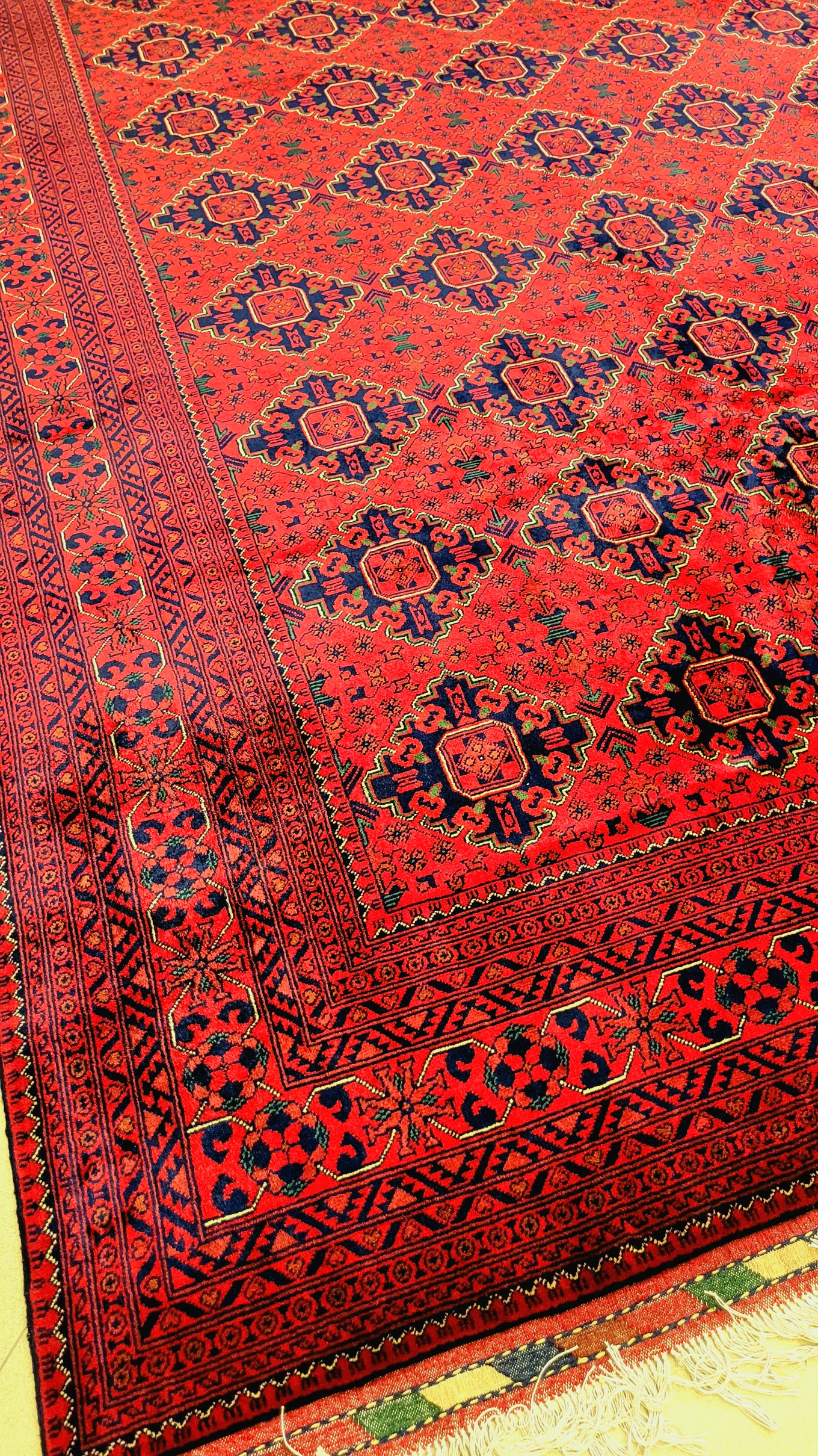The rich natural red dye gives this carpet a warm, vibrant, and timeless character that becomes even more beautiful with age.