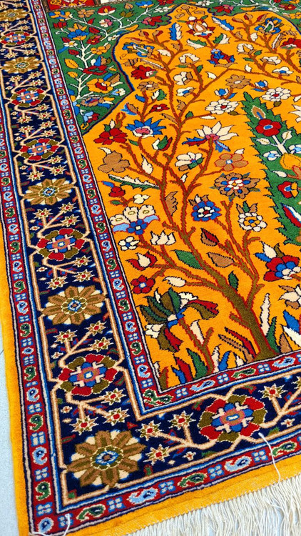 هر گره این فرش با دستان هنرمندان بافنده شکل گرفته و نقوش اصیل آن، داستان زندگی، رشد و برکت را به چیدمان خانه شما میآورد.